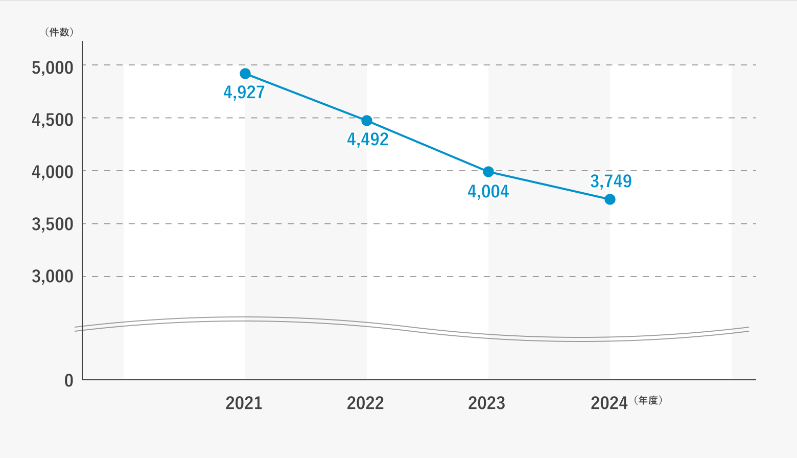 つばさ通所リハビリテーションでは、病院併設型の事業所のため、介護度の高い重度の方にも、急変時の介護から医療への連携面において安心してご利用いただける特長があります。実際に利用者の54.6%が介護度3以上であり、酸素療法や胃瘻、インスリン使用や吸引、人工肛門などを必要とされる方も利用いただいています。みなさまが、安心して在宅生活を継続できるよう、ご希望に沿った個別リハビリテーションを行い支援致します。