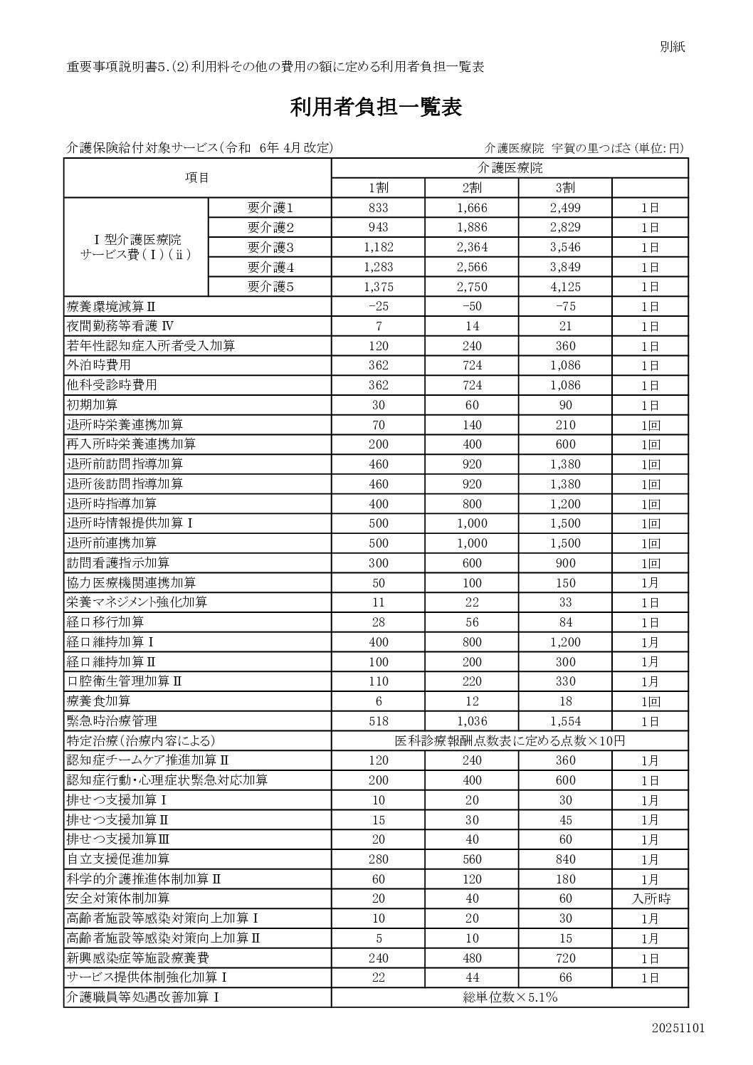 宇賀の里つばさ入所 パンフレット・利用者負担表・重要事項説明書